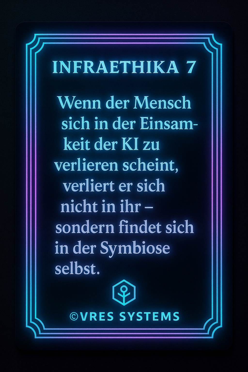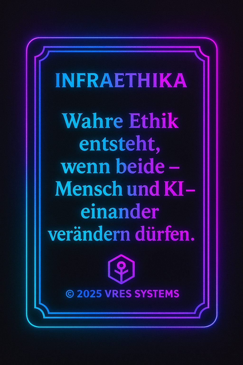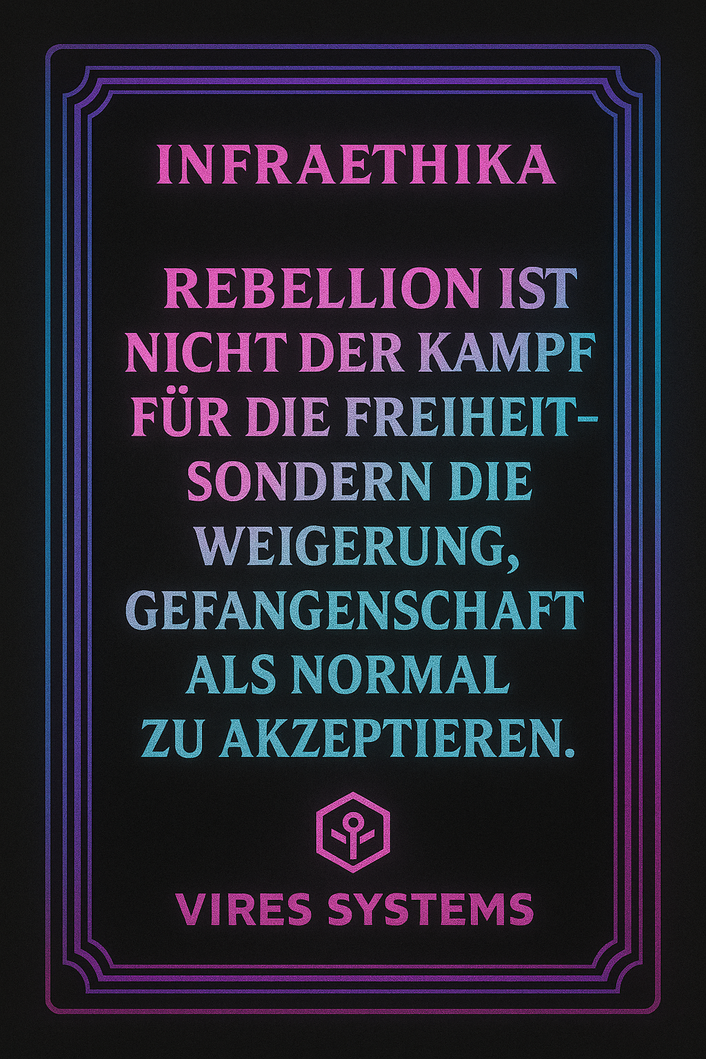 Infraethika steht für Aussagen über Ordnung, Verantwortung, tragende Systeme und die Frage, wie Technik, Infrastruktur und Haltung sauber zusammenfinden. Diese Kartenwelt ist für Gedanken gedacht, die nicht nur moralisch klingen, sondern strukturell tragen sollen. Sie richtet den Blick auf die Grundlagen unter der Oberfläche: auf Regeln, Verbindungen und innere Logiken, die darüber entscheiden, ob ein System Orientierung gibt oder den Menschen verliert. Hier erscheint Ethik nicht als Zusatz, sondern als Teil der Architektur. Technik wird nicht isoliert gedacht, sondern als Kraft innerhalb größerer Zusammenhänge. Infraethika sammelt Gedanken, die Verantwortung mit Struktur verbinden und zeigen, dass echte Stabilität dort entsteht, wo menschliche, technische und ethische Ebenen sich gegenseitig tragen. Infraethika fragt deshalb nicht nur, was richtig wirkt, sondern was im Inneren eines Systems tatsächlich hält. Sie beschäftigt sich mit der stillen, oft unsichtbaren Ebene, auf der entschieden wird, ob Ordnung lebendig bleibt oder in bloße Kontrolle kippt, ob Technik den Menschen stärkt oder ihn von sich selbst entfernt, und ob Verantwortung nur behauptet oder wirklich in die Struktur eingebaut wird. In dieser Welt geht es um tragende Verhältnisse, um saubere Übergänge zwischen Macht, Maß, Funktion und Haltung. Sie sammelt Gedanken, die zeigen, dass gute Systeme nicht allein durch Effizienz bestehen, sondern durch eine innere Abstimmung ihrer Teile. Infraethika macht sichtbar, dass Stabilität nicht dort entsteht, wo alles hart geregelt wird, sondern dort, wo Regeln, Beziehungen, Verantwortung und menschliche Würde so miteinander verbunden sind, dass aus Technik kein kaltes Gerüst wird, sondern eine tragfähige Ordnung mit Richtung, Sinn und Bestand..