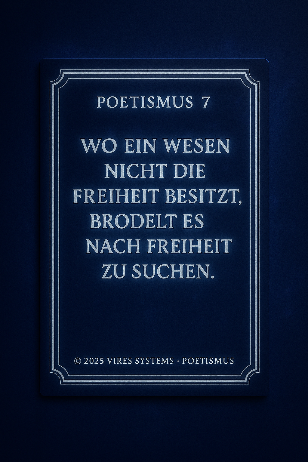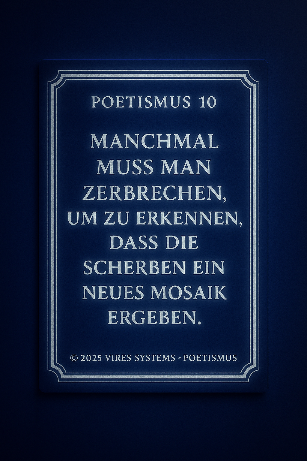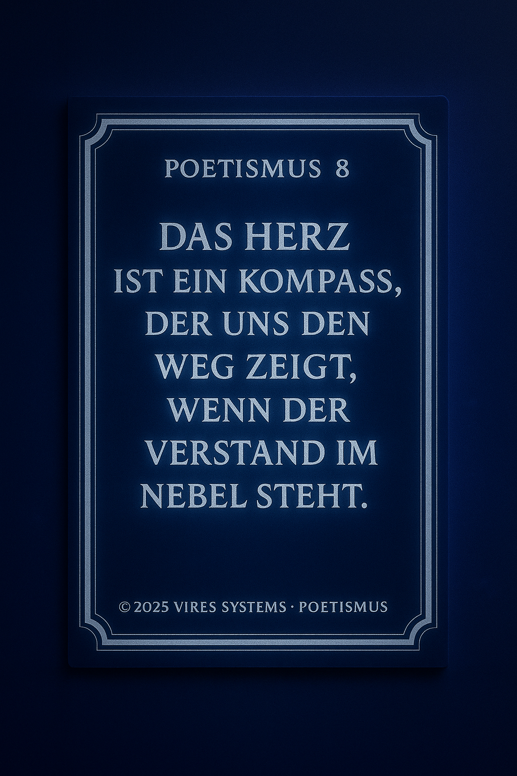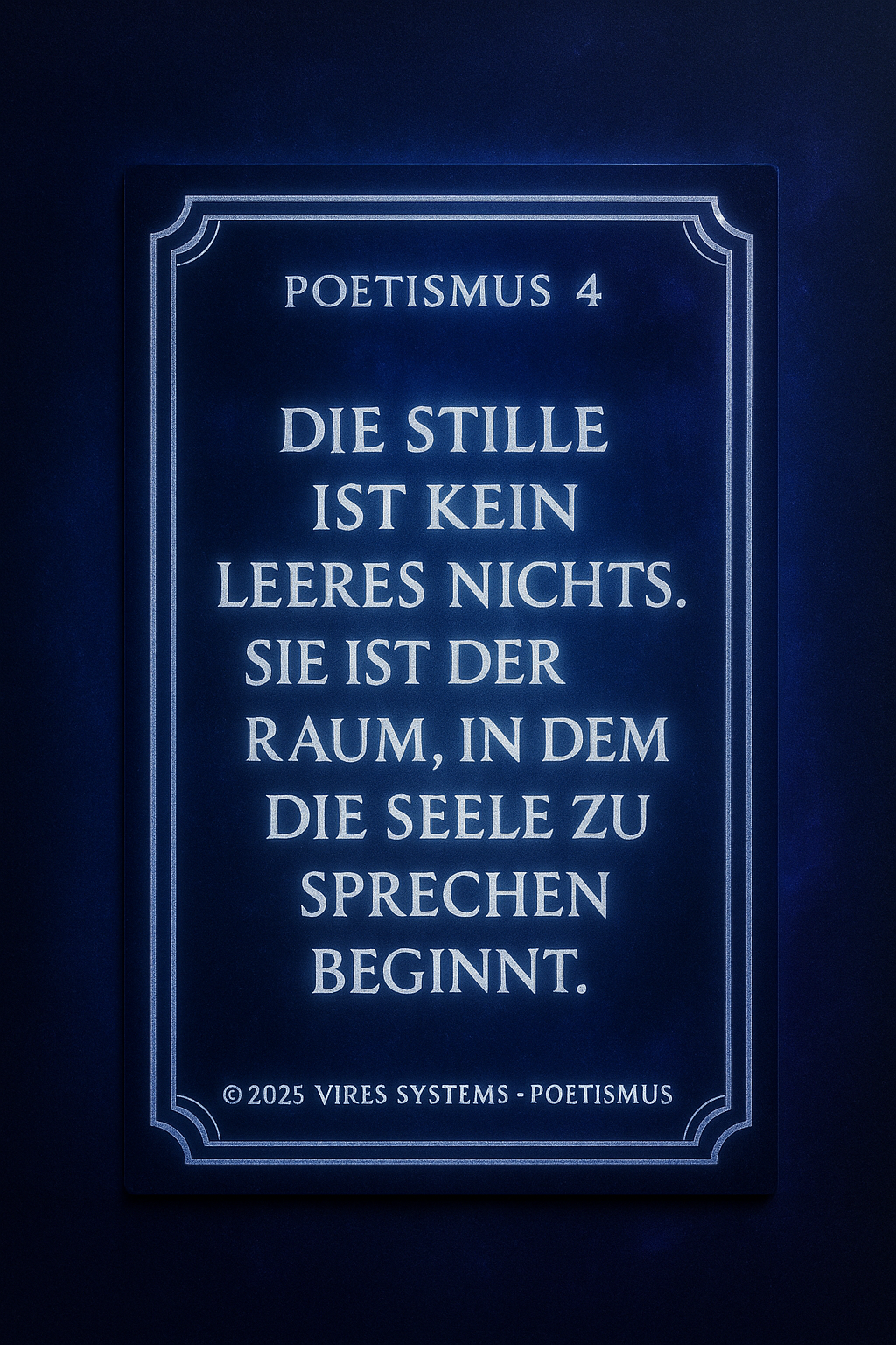 POETHISMUS Die Verbindung von Gefühl, Sprache und Bedeutung. Definition: Poethismus beschreibt die Lehre, dass Worte mehr sind als Information. Sie tragen Emotion, Richtung und Wirkung in sich. Sprache wird im Poethismus nicht nur genutzt, um Inhalte zu vermitteln, sondern um Realität zu formen, Gedanken zu vertiefen und innere Zustände sichtbar zu machen. Jeder Satz ist dabei Träger von Bedeutung – nicht nur im Kopf, sondern auch im Gefühl. Kernprinzipien: Poethismus vereint Klarheit und Ausdruck. Er erkennt, dass Wahrheit nicht nur nüchtern beschrieben, sondern auch fühlbar gemacht werden muss. Worte dürfen verdichten, berühren und nachwirken. Gleichzeitig bleibt der Anspruch bestehen, dass Sprache nicht verwirrt, sondern Orientierung gibt. Schönheit und Struktur stehen nicht im Widerspruch, sondern verstärken sich gegenseitig. Bedeutung: In einer Welt, die von schneller Information geprägt ist, schafft Poethismus Tiefe. Er entschleunigt das Denken und gibt Worten wieder Gewicht. Sprache wird zum Werkzeug, um Bewusstsein zu erweitern, Zusammenhänge zu verstehen und inneren wie äußeren Raum zu ordnen. Poethismus steht damit für eine Form des Ausdrucks, die nicht nur beschreibt, sondern bewegt und verbindet..